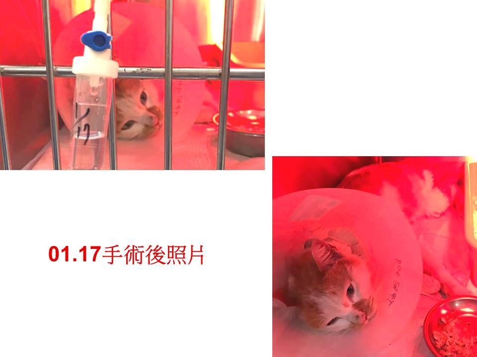 醫師在1月18日進行了手術,除了於胃與脾臟間取下了大塊的腫瘤外,脾胃間的大網膜區域有大量密集的結節,並發現整體腹腔的漿膜面皆有結節產生。術後和外科醫師討論之後,花花為感染FIP的可能性又大大的提升。