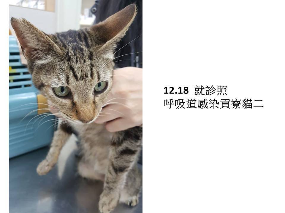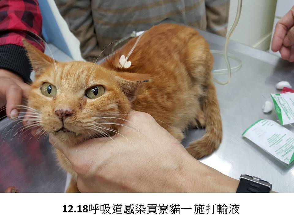 由於山區氣候惡劣,貓咪常常生病,這次帶了兩隻上呼吸道感染較嚴重的貓咪至醫院治療,因貓咪非常虛弱,醫師立即為貓咪施行輸液注射及氣霧治療等,確定貓咪種況較為穩定後再開兩周的口服藥才讓貓咪回居住地。