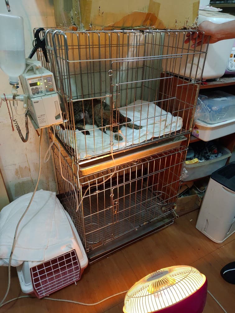 原本在籠子裡讓他恢復,已可自己進食與上廁所,同時因考慮到連假沒人照顧的關係,故將他放出來,並給予一定份量的食物與水,但連假結束後,還是不幸過世