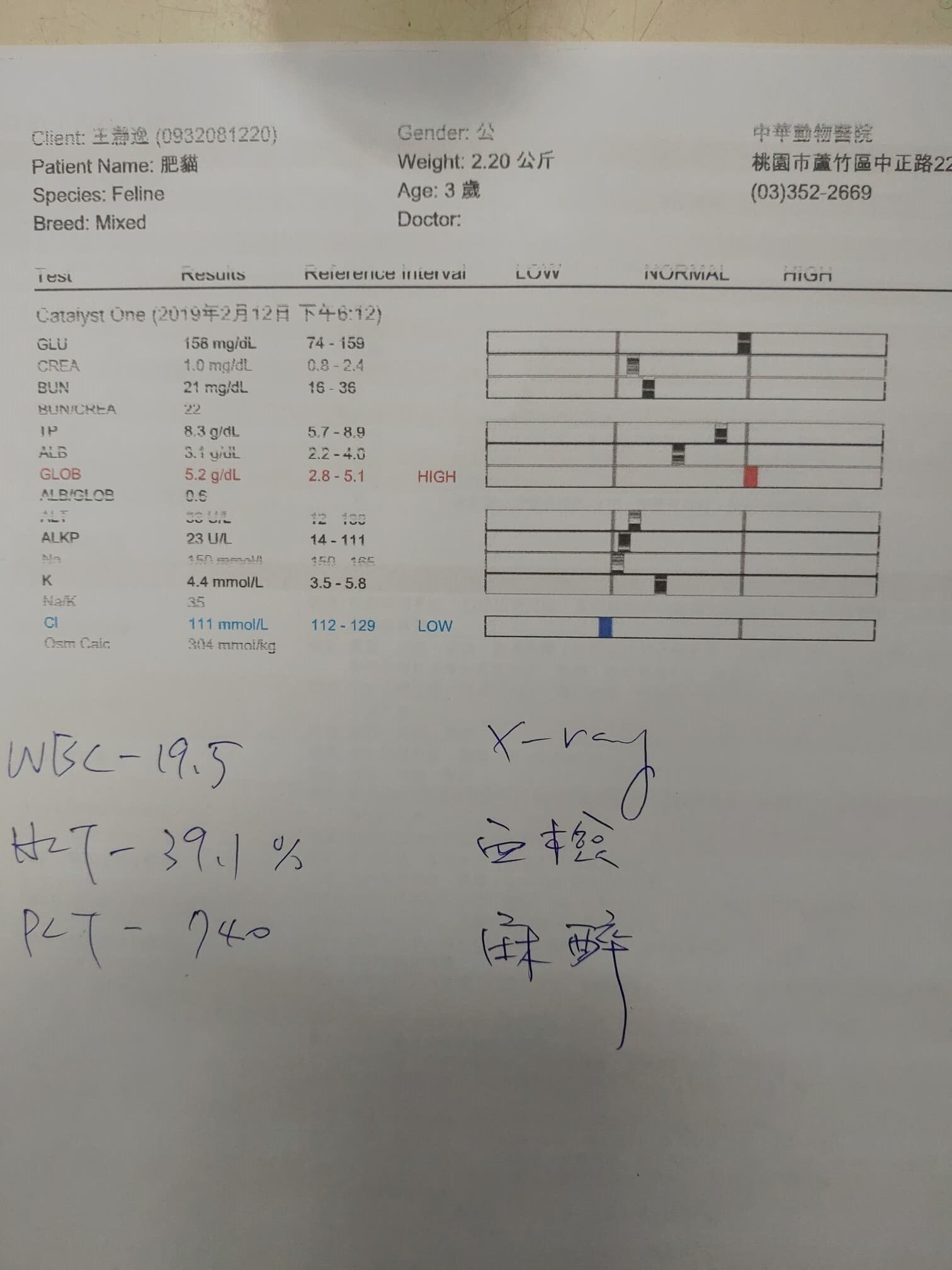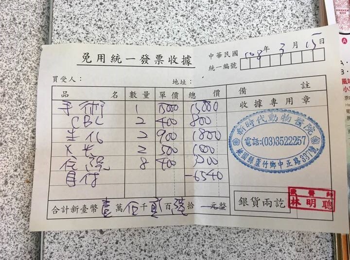 主題: 園區浪貓胃部有異物需開刀治療 申請者姓名: 王瀞逸 花色: 申請日期: 2019-02-24 13:10:12 申請者部落格: 申請者臉書網址: 所在縣市/合作醫院: 桃園縣/新時代動物醫院 治療費用: 15260元 需求人數: 33人 已結案 (2024-05-31 18:35:06) 報名人員: Vita(已付款)、van(已付款)、Little Cat Chang(已付款)、罐頭(已付款)、OLivia x2(已付款)、Jade Lai x4(已付款)、Kitty Chen x2(已付款)、Andy chen(已付款)、Maggie(已付款)、典媽 x10(已付款)、自家屋珈琲焙煎所 x2(已付款)、wgs(已付款)、HANAPAPA(已付款)、Shiin(已付款)、阿霞 x4、Evelyn x2(已付款)、Benita Yeh x2(已付款)、 候補人員: 動物病情說明: 前陣子發現附近這隻浪貓叫聲有異、變瘦、活動力下降、一直流口水、常常嘔吐,故帶他去醫院請醫師檢查,檢查後,透過X光看到牠的胃裡有異物,評估後需要開刀處理,開刀後順利將胃部的異物取出(異物為一塊魚骨頭),其他內臟器官也沒其他問題,隨後吊點滴住院。術後第二天,醫師發覺牠眼睛對光沒有反應(瞳孔不會縮),判斷有可能有腦震盪的可能,因此在牠的點滴中加了降腦壓的藥,隔天狀況就好很多,眼睛也對光有反應了,隨後幾天貓咪慢慢的從需灌食到能自己吃飯上廁所。 動物近況說明: 目前緩慢但慢慢恢復中,而出院後也依照醫師的建議,先讓牠繼續在籠子裡恢復,等狀況更好了再原地野放。