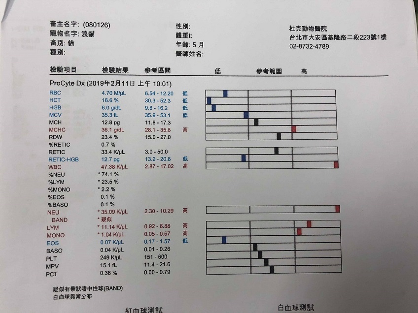 主題: 虎斑小美女等待好心人的救援 申請者姓名: 侯羿文 花色: 申請日期: 2019-04-26 12:58:16 申請者部落格: 申請者臉書網址: 所在縣市/合作醫院: 台北市/欣旺動物醫院 治療費用: 31050元 需求人數: 67人 已結案 (2024-05-31 18:35:04) 報名人員: Jin(已付款)、周小超(已付款)、Hollt(已付款)、Hollt、GarField Lin(已付款)、李宜芳 x3(已付款)、Jasmine Lin(已付款)、SHIUAN(已付款)、罐頭(已付款)、心桓 x2(已付款)、小瓜 x2(已付款)、Shoot Yo(已付款)、林小熊(已付款)、Lihua Chiang(已付款)、evelyn.lin66 x2(已付款)、劉熊妹(已付款)、陳小翼 x2(已付款)、Szumin Yu(已付款)、Rachel(已付款)、黛咪(已付款)、何偉靖(已付款)、Chiayun Lee(已付款)、amberkuyin x2(已付款)、amberkuyin x2(已付款)、Hllen Liu(已付款)、魚魚彤(已付款)、tina(已付款)、Yen Lin Chen x2(已付款)、郭默 x3(已付款)、Freesia Tsai(已付款)、Joan(已付款)、Wanyun Chen(已付款)、陳冠綸 x2(已付款)、chichu0420(已付款)、Celine18727(已付款)、Yys x2(已付款)、感謝四面佛大恩大德 x2(已付款)、Yuching Wang(已付款)、Chi(已付款)、Mia Chao(已付款)、捲捲(已付款)、EMMA(已付款)、CrystalBall x2(已付款)、Andy chen(已付款)、Angel Lin(已付款)、Genrei Chen、Genrei Chen(已付款)、Juen-Nien Lin(已付款)、safake x2(已付款)、GongLin Peng(已付款)、Kent Han x2(已付款)、Chia-Chieh Chiang(已付款)、 候補人員: 動物病情說明: 約3~4個月母貓,2/10 17:30捕獲的時候先送到有營業但是未有配合的「杜克動物醫院」該醫生第一天檢查的過程說是下半身都沒有知覺,連痛覺都沒有,照了X光看是骨盆骨折,再加上內出血導致的低血壓+貧血。於2/11早上約10:00 檢查的時候說有血尿,整個腹腔照X光看起來是霧霧的,也一直都有血水從屁股流出來