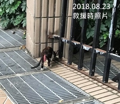 小安是在2018年8月,協會志工接獲通報至新店安坑區救援的小貓咪,當時小安有嚴重的直腸脫出,直腸掉一大截出來垂掛在肛門外,看了真是讓人心疼,幸好誘捕過程很順利,立即將她送至沐恩醫院進行治療。