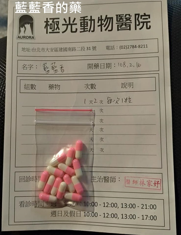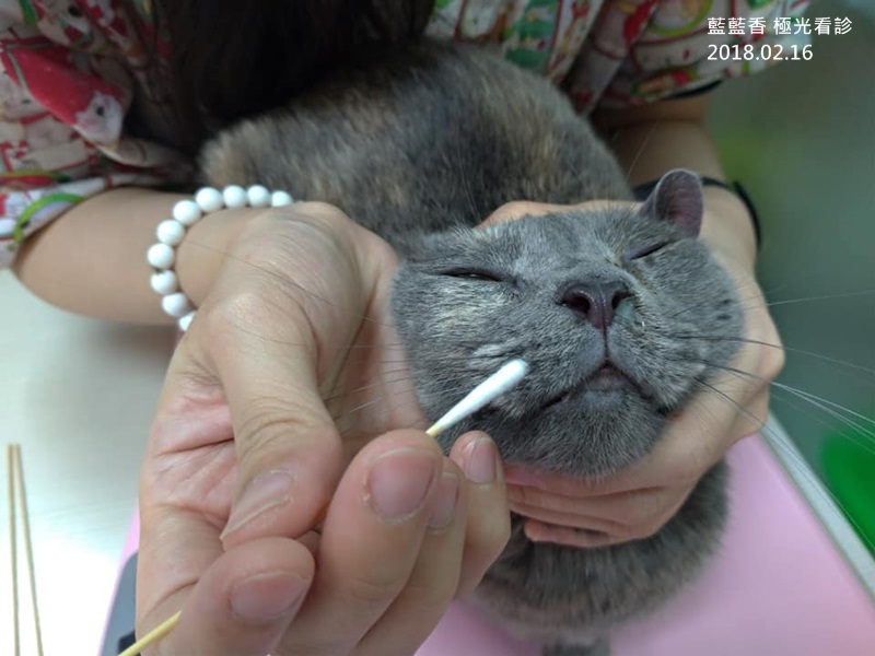 照護員依照醫囑,餵藍藍香吃藥、進行氣霧治療及早晚補充營養品,淚眼鼻涕症狀已有改善,食慾精神也沒有受到太大影響,藍藍香現在很愛撒嬌,摸起來軟綿綿,翻肚肚樣子相當可愛,希望她開心健康的在安養之家生活。