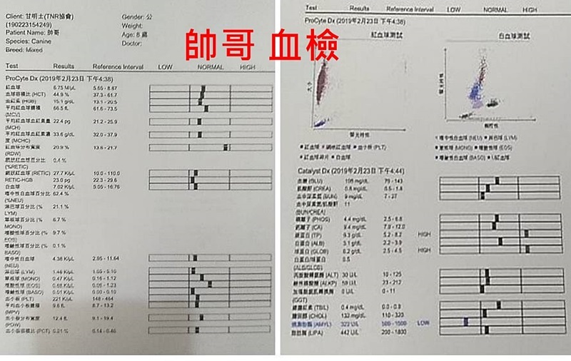 主題: 心絲蟲的狗狗帥哥、受傷的狗狗小鬼 申請者姓名: 臺北市支持流浪貓絕育計劃協會 花色: 申請日期: 2019-02-26 16:26:54 申請者部落格: 申請者臉書網址: http://www.tnrtw.org/ 所在縣市/合作醫院: 台北市/其他院所醫助專案(醫院請先MAIL溝通) 治療費用: 7660元 需求人數: 28人 已結案 (2024-05-31 18:34:49) 報名人員: 李梨子 x2(已付款)、Kuen-Lin Tsai(已付款)、lan(已付款)、楊小貓(已付款)、周星星 x2(已付款)、WeiMin Lin x2(已付款)、小高 x5(已付款)、喜樂啊(已付款)、Jasmine Lin(已付款)、littlevvvv(已付款)、hane(已付款)、GarField Lin x2(已付款)、Chia-Hung Ma x8(已付款)、 候補人員: 動物病情說明: 米白毛色的帥哥與黑狗狗小鬼是協會林口安養之家的狗狗,他們原先被棄養在大屯山區,後來大屯山要興建露營區,擔心這些狗狗們的安危,協會工作人員前往誘捕到他們後便帶回安養之家住下。