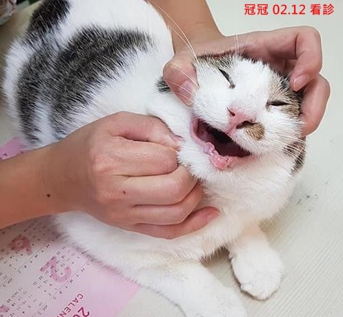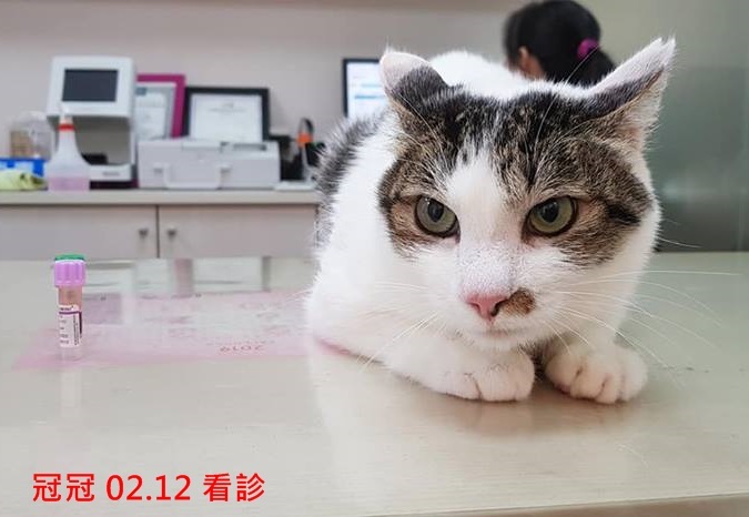 某日照護員發現冠冠食慾變差變瘦了,協會立即安排他就醫檢查,檢查結果是冠冠有很嚴重的口炎,血檢結果並顯示還有腎衰的情況,因此住院進行拔全齒手術,因手術完成後,腎衰及口炎的部份都須要都繼續服藥及定期回診檢查,於是冠冠便住在台北的安養之家。