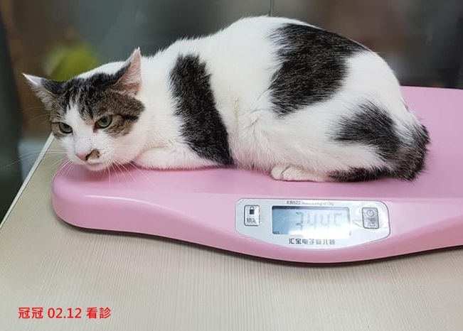 冠冠原本是每天都跑來協會蹭飯的街貓,因工作人員觀察到他的食量很大,但體型卻一直是小小瘦瘦的,擔心他是否健康有問題,於是將他誘捕帶至醫院做詳細檢查。