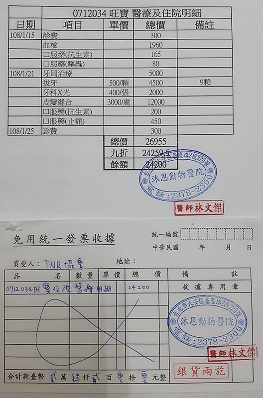 本筆醫助為旺寶於1月15日至1月28日間至沐恩醫院的看診費用,