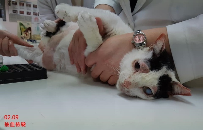 抱抱雖然一眼因為以前感染受損,但他的臉蛋還是相當可愛,粉嫩的乳牛貓毛色,讓人看了就想抱抱疼疼他,抱抱的個性相當乖巧溫和,這次生病要多吃藥及打針,又因皮膚問題好幾處禿毛,看了讓人很心疼,治療至今,尿尿問題已有逐漸改善,皮膚的紅腫也有恢復,希望他的濃鼻涕舊疾也能治好,讓抱抱可以更開心更舒服。