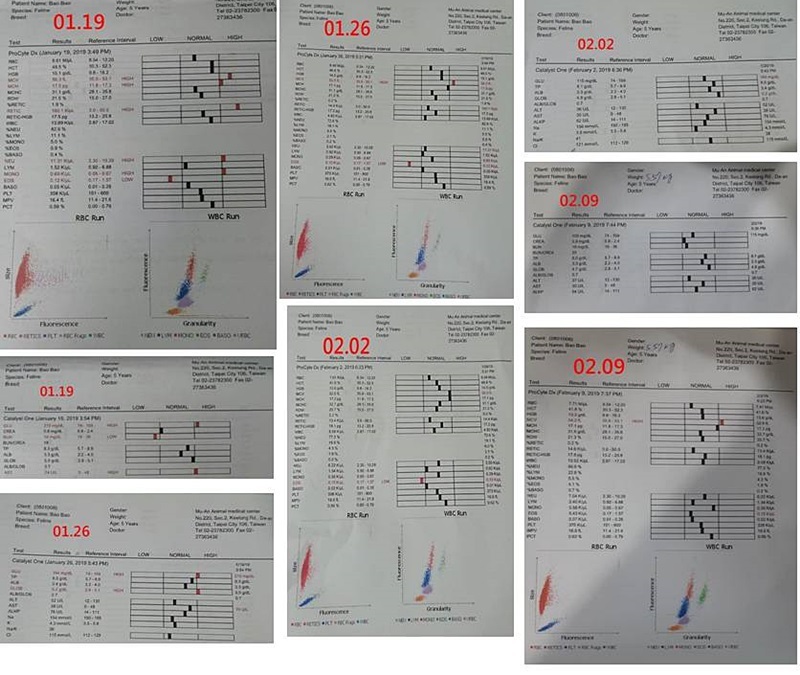進行血檢、皮膚、鼻涕採樣,做黴菌、細菌的培養,血檢結果,除可能太緊張至血糖升高較多,其他指數以抱抱目前情況是還好。