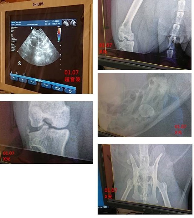 從X光片上看起來,以前骨盆有受過傷,有一些像碎骨片的東西,沒有明顯結石的樣子,腎臟內沒看到有結石,膀胱有點太小,附近的微小白點,因仰躺照X光時,膀胱剛好被骨頭遮擋到,所以無法確定是否為膀胱的結石,另一個奇怪的影像是仰躺時,在偏左邊肚子的地方有異物,有可能是結石,但不在膀胱內,所以沒辦法很肯定是結石,需要照超音波再次確認。