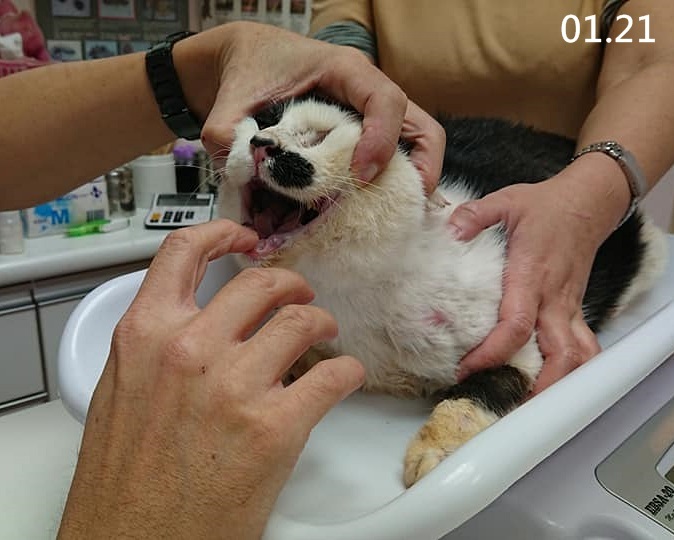 鮮草住院治療了一個多月,進行全套血檢、二合一檢驗、二次傷口清創縫合、完成結紮、洗牙,至2019年1月11日,狀況趨於穩定後便將他接回安養之家。