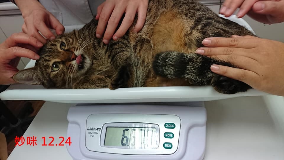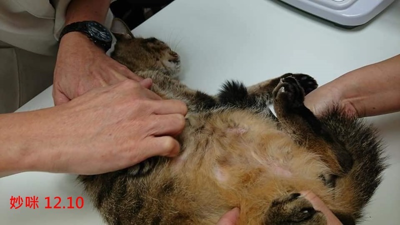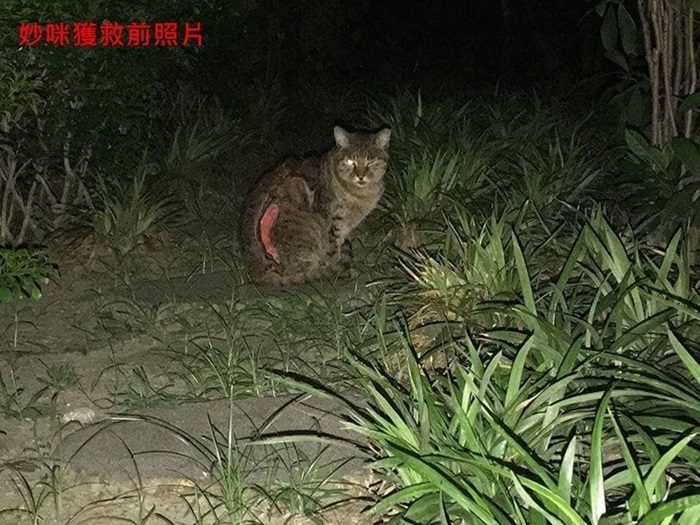 妙咪是第一隻被發現受傷送醫的貓咪,他在5月30日就受傷了,至6月中旬傷口已快好,但是6月17日傷口又變大,6月18日在餵養人的協助下捕捉到妙咪送醫救治。
