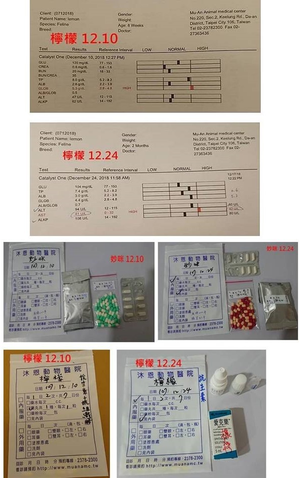 12月10日檸檬因為眼睛紅腫淚眼汪汪還打噴嚏流鼻水因此前往沐恩看診,血檢有發炎情況,醫師研判是上呼吸道病毒感染,先為檸檬打皮下輸液補充水分,並須服藥、點眼藥、氣霧治療、補充離胺酸保養,因檸檬年紀幼小、抵抗力弱,所以症狀會較為嚴重,加上小貓用藥須特別留意,因此須持續回診追蹤檢查,本筆醫助為檸檬於12月10日、12月24日至沐恩看診費用,包含血檢、口服藥,請大家一起幫忙可愛的檸檬,謝謝。