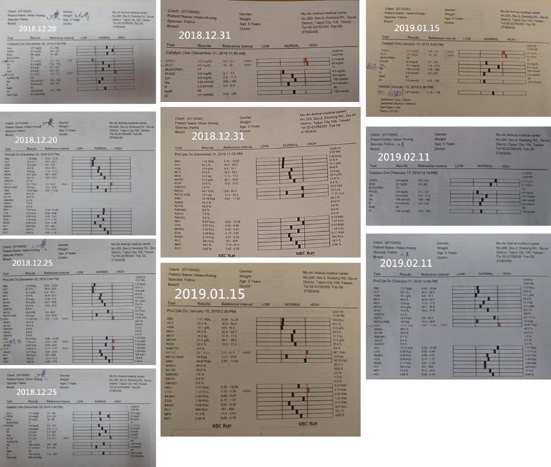 目前仍無法判斷,小黃先前的高鈣現象是何種原因引起,小黃今多項指數皆有進步,且體重維持,因此極光先前用藥是有得到效果,目前先針對小黃嘔吐、泥便等消化道問題進行治療。