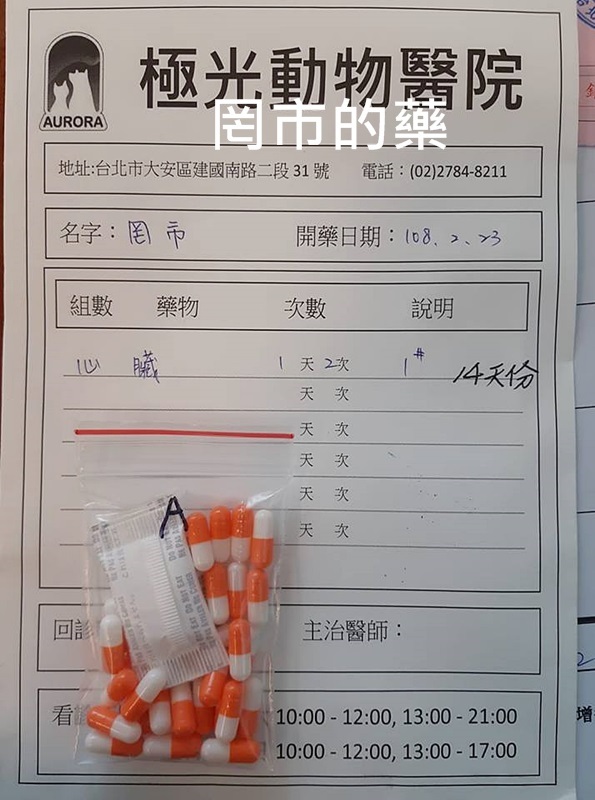 心臟藥,14天份,一天二次,一次一顆,舊藥先吃,藥吃完三天前回報。