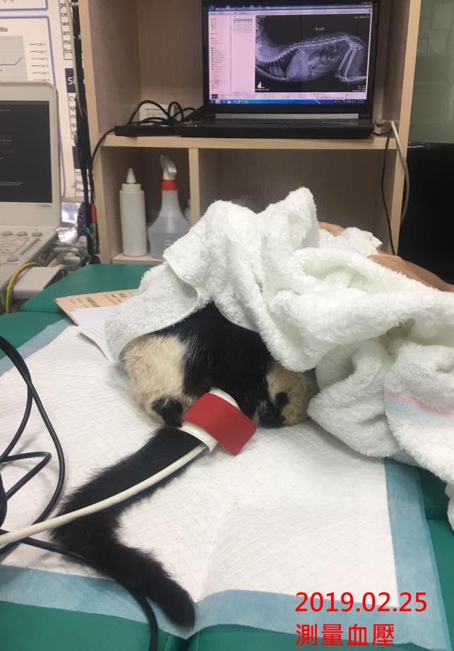 1月17日工作人員發現鮮草身上濕濕的、身體左側傷口有膨起、有拉肚子情況因此約診沐恩醫院進行檢查。