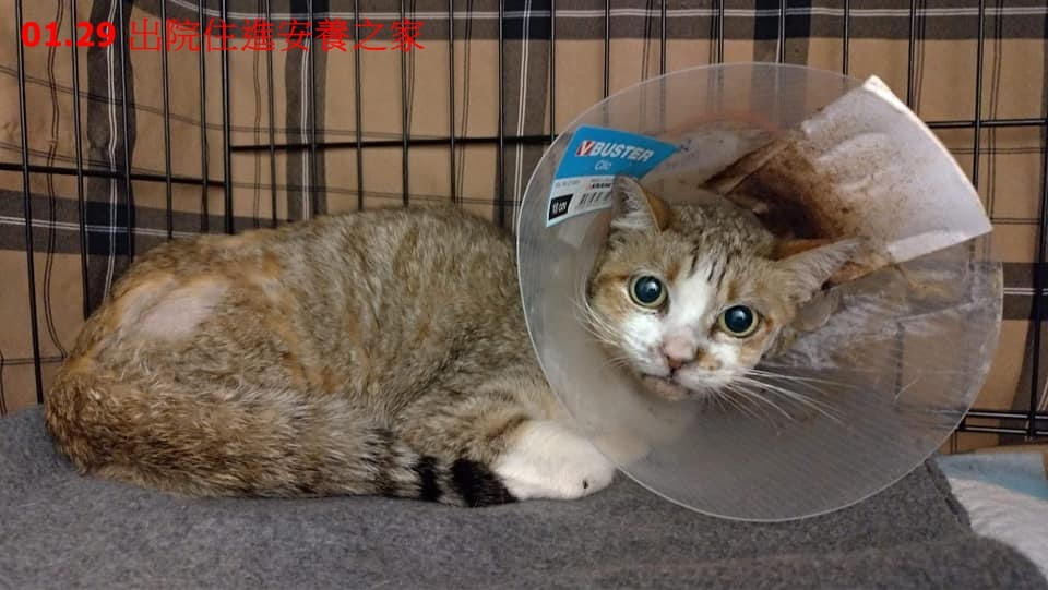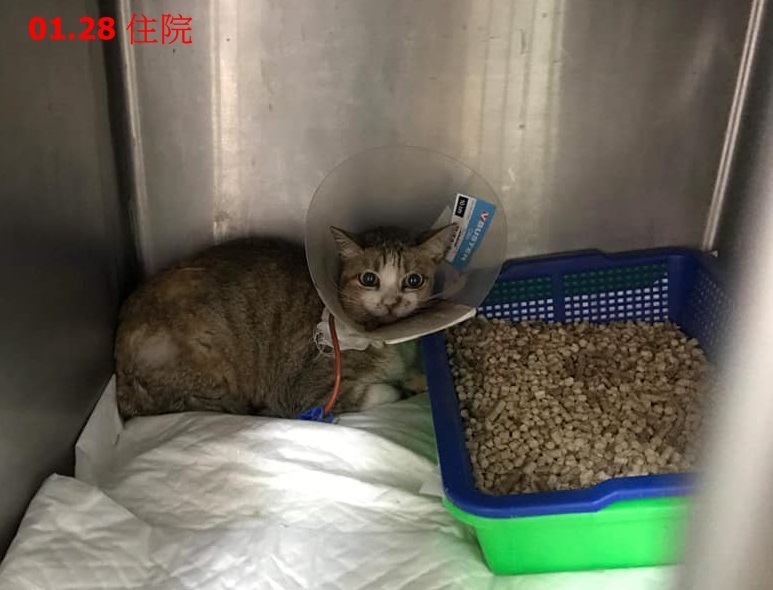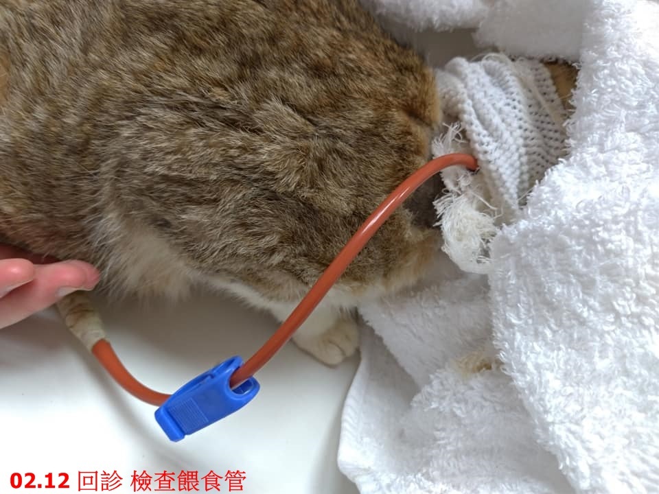 術後觀察幾日後,因有餵食管可以進行灌食、投藥治療,澎皮狀況漸漸穩定,此時考量到探望較為不便等原因,故於1月22日將澎皮轉院到協會配合的沐恩動物醫院住院治療。