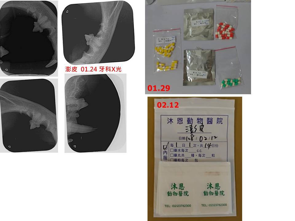 至1月29日,手術縫線拆除、及已可自行進食,因此辦理出院,由協會工作人員接回安養之家照護,並配合醫師的指示定期回診檢查,每次回診都須追蹤血檢變化、檢查口腔及餵食管裝置情形,本筆醫助是澎皮自1月22日至2月26日於沐恩動物醫院的醫療費用,包含住院、牙科X光、牙科手術、血檢、血巴東檢驗、用藥等,澎皮的醫療還須持續一段時間,希望大家可以一起幫忙,謝謝大家。