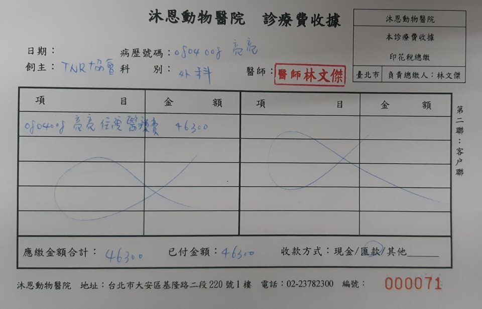 戶名:社團法人臺北市支持流浪貓絕育計劃協會