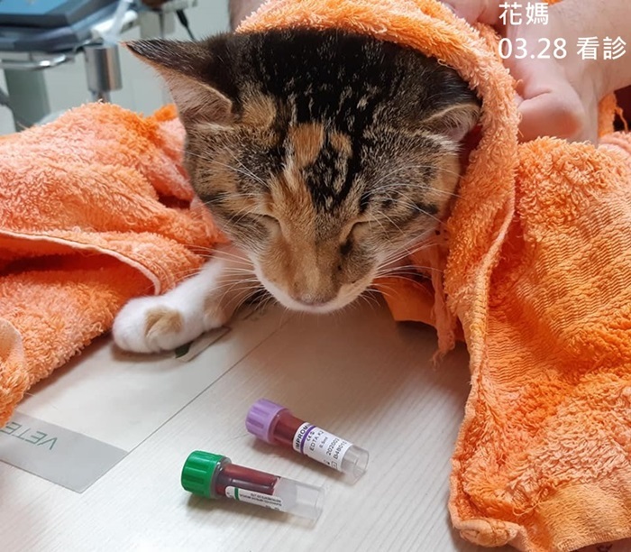 花媽是來自台中眷村的貓咪,當時她生活的地方環境極為惡劣、飲食相當差,生病時沒有得到適當即時的醫療,種種情況導致花媽健康情況不好、非常瘦弱、持續腹瀉,協會帶她送醫檢查,除了體重過輕,還有嚴重的貧血、免疫性肝炎、口炎。