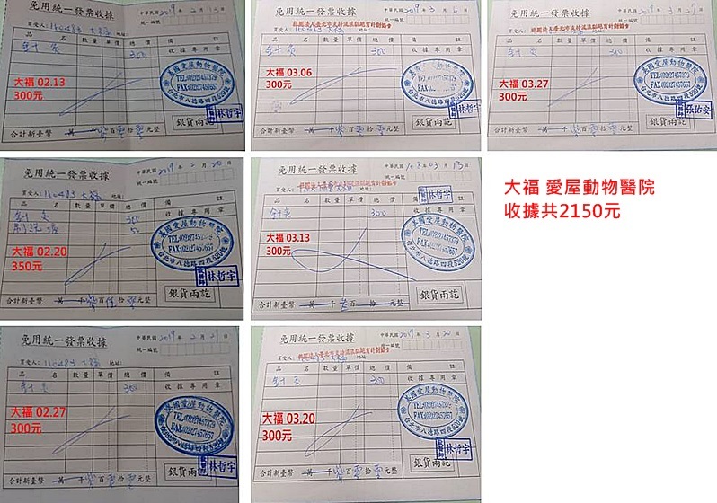 目前大福仍持續每周至愛屋動物醫院進行針灸治療,同時檢查腸道積便情況,本筆醫助為大福2019年2月至3月的回診費用,包含檢查腸道、針灸及大福最近長黴菌的診療費,大福的醫療還須要很長一段時間,希望大家可以一起幫忙,感謝大家。