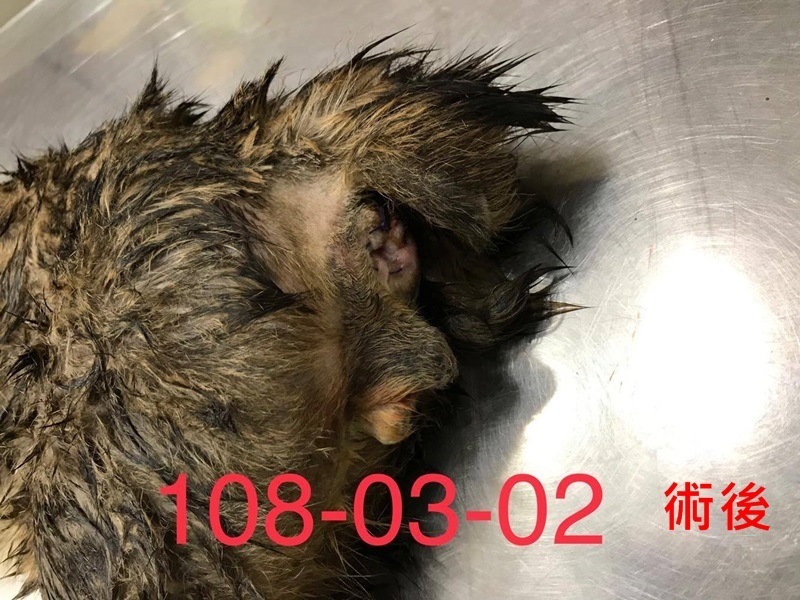 主題: 平鎮的脫腸白底虎斑 申請者姓名: 臺北市支持流浪貓絕育計劃協會 花色: 申請日期: 2019-04-24 16:19:08 申請者部落格: 申請者臉書網址: http://www.tnrtw.org/ 所在縣市/合作醫院: 桃園縣/陳獸醫院 治療費用: 7000元 需求人數: 26人 已結案 (2024-05-31 18:32:35) 報名人員: sharonkelly x2(已付款)、平(已付款)、Terara(已付款)、陳慧倪 x2(已付款)、僥僥(已付款)、張妮娜(已付款)、靜小芳(已付款)、賴小虎(已付款)、王員外的爹 x2(已付款)、可樂 x3(已付款)、MIMIWA x3(已付款)、Eunice Li x2(已付款)、薇薇安(已付款)、Andrea x2(已付款)、曾小萍(已付款)、Alice(已付款)、曜(已付款)、 候補人員: 動物病情說明: 這隻脫腸貓咪在平鎮清潔隊附近流浪多年,近一年有民眾發現貓咪的一截腸子脫出在肛門處,許多愛媽及善心民眾試圖捕抓,都因為貓咪出沒時間不定或捕捉器材不足而失敗,志工經救援版得知後,於3/5前往捕捉成功並送往特約的陳獸醫院開刀縫合,縫合成功,不需截腸開腹腔手術,癒後狀況良好。 第一次縫回因為腸子還沒有回復慣性,以致一週後又脫出;經第二次縫回就成功,腸子也恢復,所以住院觀察二週後沒有異狀於3/23原放回平鎮清潔隊,經觀察三天無異常。
