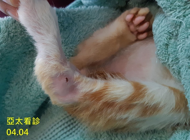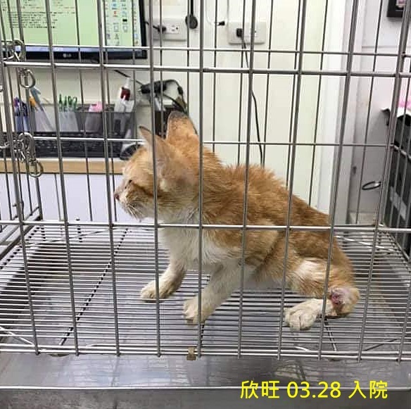 主題: 後腳軔帶斷裂及潰爛傷口的咪兔 申請者姓名: 臺北市支持流浪貓絕育計劃協會 花色: 申請日期: 2019-05-05 17:07:29 申請者部落格: 申請者臉書網址: http://www.tnrtw.org/ 所在縣市/合作醫院: 台北市/欣旺動物醫院 治療費用: 4100元 需求人數: 16人 已結案 (2024-05-31 18:32:30) 報名人員: 阿雪(已付款)、Jlo Deng x5(已付款)、Juen-Nien Lin(已付款)、rebecca chiu x3(已付款)、Joyce914(已付款)、郭靜蓉 x5(已付款)、 候補人員: 動物病情說明: 漂亮的半橘小貓咪兔是在3月28日,被擁有驚人貓雷達的協會工作人員無意間發現的,當晚7時多,奔波一整天的工作人員至公廁,發現旁邊雜物草叢裡一個橘色小小身影,可憐的咪兔不知為何腳上一個看似很深的傷口,工作人員立即架籠誘捕,咪兔喵喵哭著,一定是又痛又餓,幸好很順利的誘補到後立即帶往欣旺醫院檢查,醫師為咪兔清創傷口施打抗生素以防感染,並留下咪兔住院觀察,於4月1日進行X光檢查,發現腳踝處軔帶有斷裂,在住院幾日後便接回安養之家。