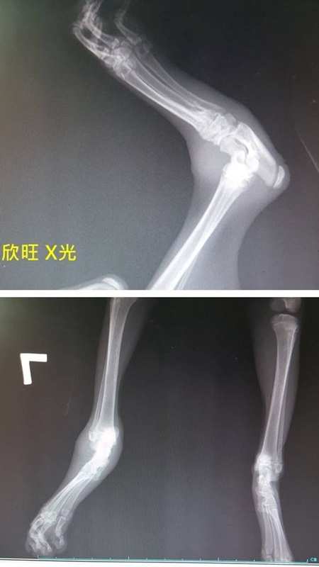 4月4日初診,檢視欣旺拍攝X光,韌帶斷裂,無須用藥,觀察及補充營養。