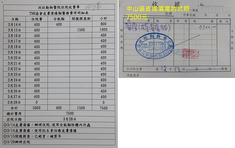 主題: 中山區皮膚潰瘍的玳瑁、萬華區呼吸道感染的白底虎斑貓咪 申請者姓名: 臺北市支持流浪貓絕育計劃協會 花色: 申請日期: 2019-05-04 04:59:44 申請者部落格: 申請者臉書網址: https://www.facebook.com/SupportTNR/ 所在縣市/合作醫院: 台北市/欣旺動物醫院 治療費用: 12600元 需求人數: 48人 已結案 (2024-05-31 18:32:23) 報名人員: untitle(已付款)、Vicky Tung(已付款)、ying(已付款)、chih(已付款)、En Rong Shen(已付款)、yana(已付款)、tintin x2(已付款)、gilly(已付款)、蔡Tina(已付款)、Deborah(已付款)、郭默(已付款)、Andrea(已付款)、Lynn(已付款)、陳語倢(已付款)、陳小莉(已付款)、hsinkai0407 x4(已付款)、Agon Liu(已付款)、aky(已付款)、林小豬 x2(已付款)、奇異果(已付款)、邱(已付款)、gill x5(已付款)、Angel Lin x2(已付款)、香菇(已付款)、水瓶座史考特、Arthur Tang x10(已付款)、Joyce914(已付款)、范范 x2(已付款)、Emily(已付款)、 候補人員: 動物病情說明: 協會多年來力行區域性抓貓絕育,這是件耗時費力、傷荷包、沒有完工期限的大工程,