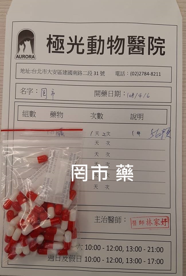 照護員須要非常注意罔市的心臟情況,除了定期至專心醫院回診量血壓、拍X光照片、心電圖超音波等詳細檢查,每天也須服用心臟藥物,因此每個月都要至極光動物醫院取藥。