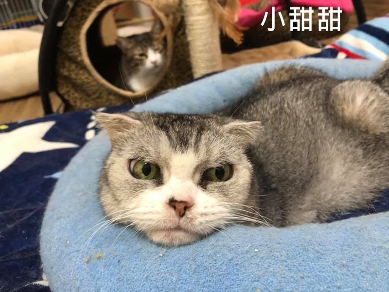 小甜甜是104年6月間協會接獲網友通報,在中和地區被救援的棄養品種貓咪,當時她的情況極差,皮膚、精神狀況都很不好,協會志工將她送醫檢查,有相當嚴重的鼻氣管炎,住院治療一段時間,等狀況穩定些就將她帶回安養之家照顧。