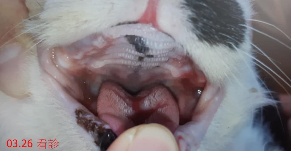 口腔部份還是很紅,便便中有黏膜帶血的狀況,醫師先排除寄生蟲問題,做糞檢,鮮草可能是皮膚癢而舔的濕濕紅紅,耳朵因為分泌物多有比較髒的情況,先不點藥,擦拭乾淨即可,口腔部份還是需要用抗生素和類固醇,服用藥物之後耳朵皮膚也能同時獲得改善,下週口腔若未能達到預期的效果,可能就需要加入干擾素計畫。