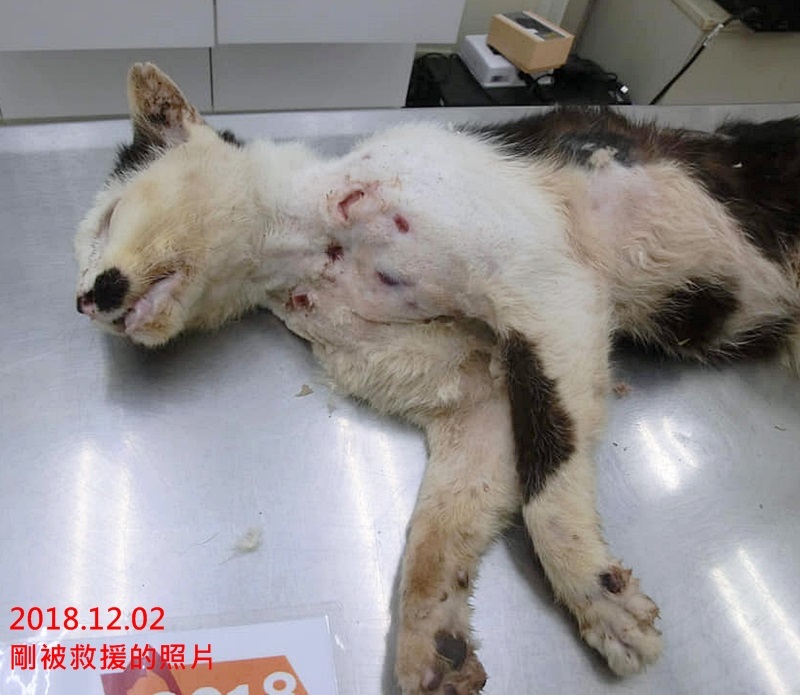 原以為鮮草是車禍受傷所以不良於行,但麻醉剃毛後發現全身上下怖滿大小傷口,應是打架被咬所造成,多處傷口已潰爛化膿,牙齒所剩無幾,眼睛有些霧化情況。