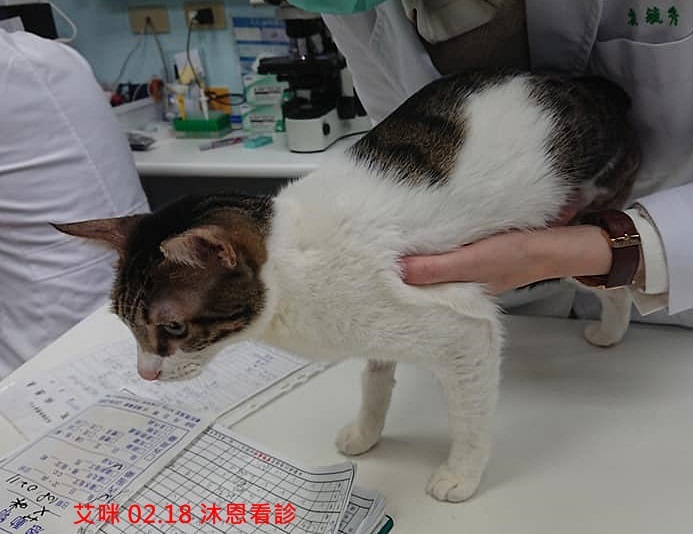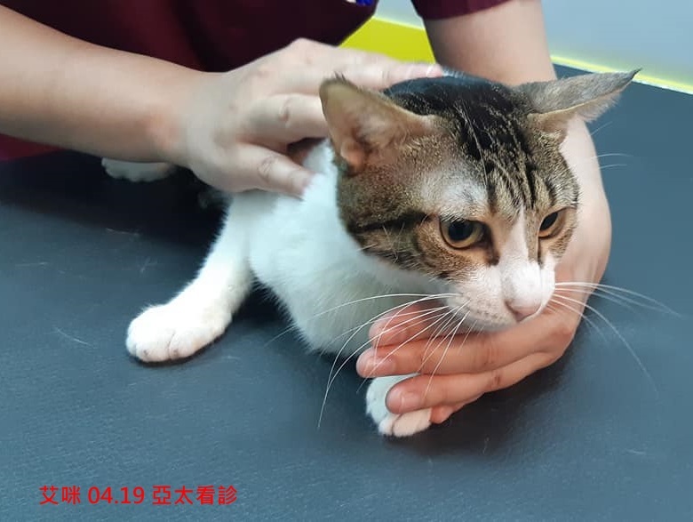 4月19日艾咪至原主治亞太醫院回診,醫師觸診檢查及檢視照護記錄後,認為艾咪近期調整的照護方有達到效果,艾咪排便情況堪稱穩定,腸道也無太多積便,應可以維持一段時間不須回診。