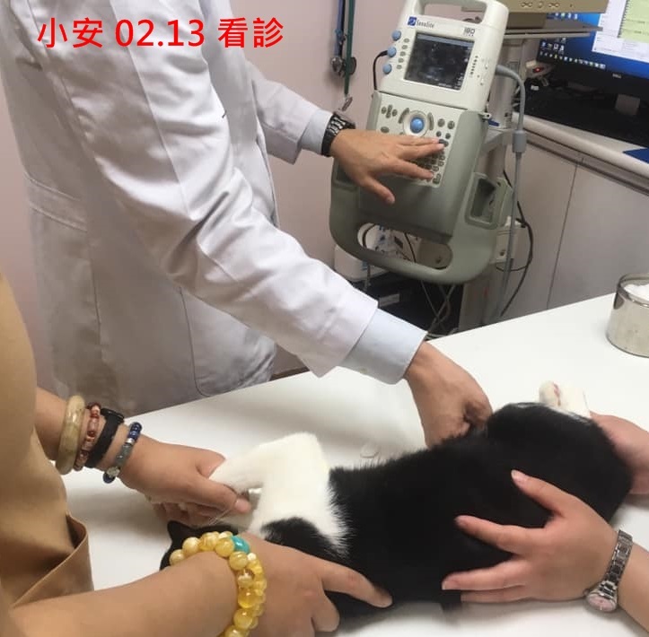 小安醫療經歷了很長一段時間,進行直腸復位、直腸固定、血檢、x光、驅虫、完成結紮,又因左眼有萎縮變小情況及淚眼不斷,約診遠見眼睛專科醫院,醫師仔細檢查後,小安因皰疹病毒引起的結膜感染導致沾黏,因但情況已久,完全恢復機率不高,還好不影響視力,測量眼睛大小,並沒有萎縮,只要每日以人工淚液保養就可以維持較好的狀況。