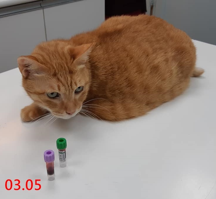 抗生素再吃兩週,腎指數大約是持平,磷鈣指數維持的不錯,目前並不需要吃到降磷藥,若有更換腎處方飼料或是突然挑食不吃需要在記錄表上註明。