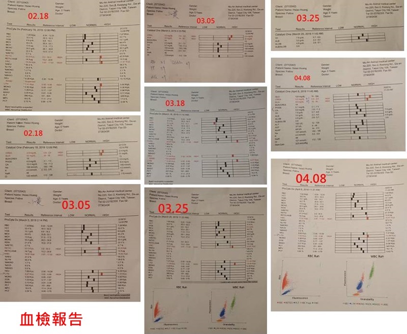 血檢: 白蛋白和球蛋白偏高但還好,腎指數還OK,白血球和淋巴球有持續上升情況,還不確定是否有潛在感染,有可能長期服用同種抗生素已有抗藥性,所以更換抗生素看有無改善,觀察至下週再驗白血球。