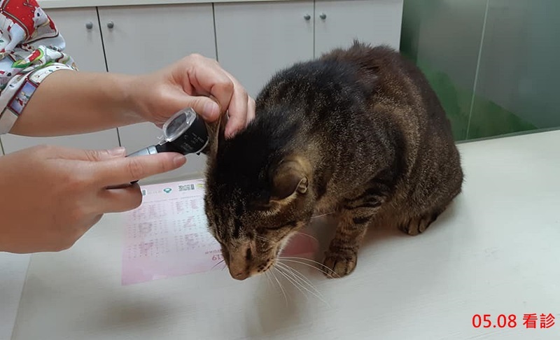 嗚拉看診時搔耳朵,醫師便順道檢查,左耳油垢多,採樣檢視發現有球菌,開一瓶耳藥,囑咐每日清潔左耳一次,為期一週,嗚啦無再出現搔癢動作即可停藥。