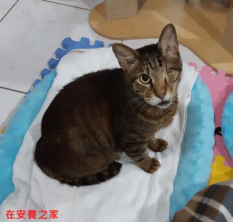 嗚啦在手術後剩下一隻眼睛,神經受損瞳孔無法正常縮放,牙齒也歪了,但嗚啦的眼神非常美麗清澄,個性好乖巧,非常親人親貓,是讓人心疼的可愛貓咪,在安養之家的舒適生活,讓嗚啦非常放鬆安心,氣霧治療也都乖乖配合,看著他因鼻子不舒服而食慾降低,大家都好心疼,希望嗚啦能快點恢復健康。