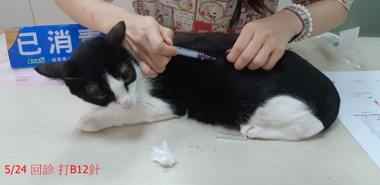 在醫院施打一劑B12,另帶回3劑依照日期施打。另5/20照護員發現小賓口腔紅,林家妤醫師認為小賓應需進行牙周手術,她隨即致電沐恩院長林文傑醫師進行討論。