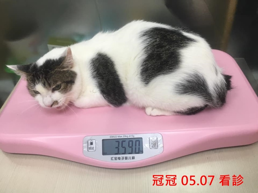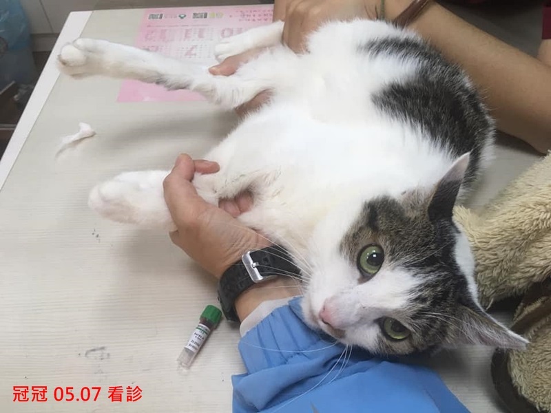 冠冠原本是生活在協會辦公室附近的貓咪,他每天都跑來辦公室外等候放飯,因他的食量很大,但體型卻與食量不成正比,怎麼吃都還是小小瘦瘦的,這讓協會志工不禁擔心他是否有什麼疾病,於是將他誘捕帶至醫院做詳細檢查。