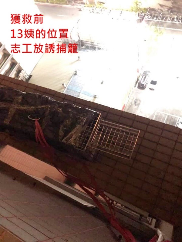 高樓風大雨大,隨時有掉落危險,情況危急,但協會位於遙遠北市,請貓友先聯絡1999,沒想到對方答覆無誘捕工具,於是聯繫協會高雄志工,看是否可瞭解狀況,