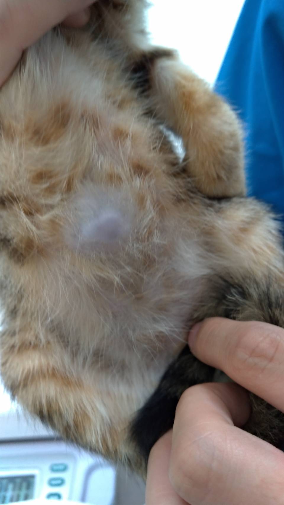 108/6/17 極光住院一天檢查,經檢查右眼潰瘍醫生說眼睛應該是保不住,但目前太瘦小不適宜開刀摘除,內科X光檢查確認有肚臍疝氣,血檢部分有貧血,有可能是營養不良,有部分數值跑不出來,醫生建議先補充營養待體力恢復,再次做血檢確定。