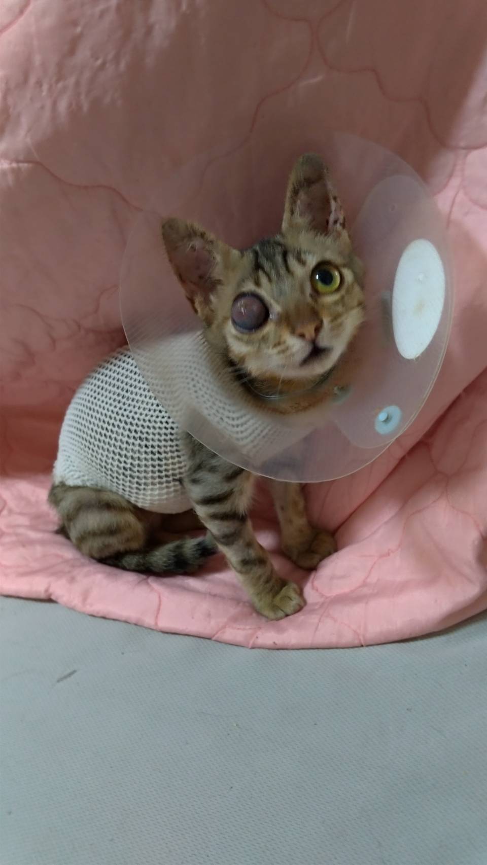 動物近況說明: 目前定期回診觀察眼睛及肚臍疝氣部分.等長大一些再做手術.