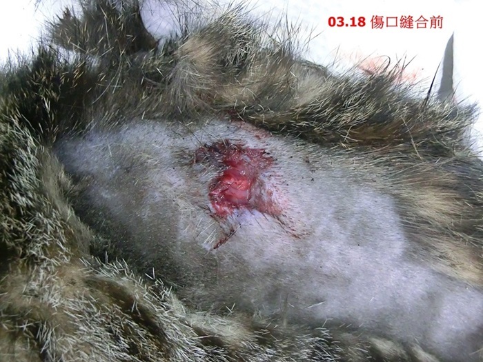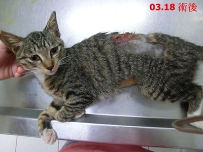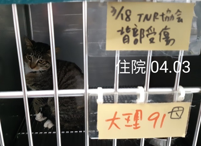 主題: 萬華區背部潰爛受傷的白底虎斑小母貓 申請者姓名: 臺北市支持流浪貓絕育計劃協會 花色: 申請日期: 2019-06-23 18:20:03 申請者部落格: 申請者臉書網址: http://www.tnrtw.org/ 所在縣市/合作醫院: 台北市/欣旺動物醫院 治療費用: 10000元 需求人數: 40人 已結案 (2019-07-11 13:17:35) 報名人員: angus yen(已付款)、Kitty Chen x3(已付款)、無名氏 x2(已付款)、Yi-Yun Wu(已付款)、Andy chen(已付款)、Cherrie x2(已付款)、TKS x2(已付款)、李吱吱(已付款)、蝦米桑 x3(已付款)、Nina Chang x5(已付款)、雲荻(已付款)、Quen Ti Lee(已付款)、簡佑銘(已付款)、tetsuyu x8(已付款)、Hsien Lien x4(已付款)、瓦莉阿嬤(已付款)、瓦莉阿嬤(已付款)、meow x2(已付款)、 候補人員: 動物病情說明: 這小白底虎斑是萬華區愛貓民眾通報的TNR案,志工先後兩組前往抓紮,小貓對誘捕籠緊戒心強,靠志工自行製作器具抓到,送醫絕育發現背部流出膿血,剃毛發現背上被咬傷、有一大塊潰爛傷口,已有感染現象,清創治療月餘,傷口已癒合、情況穩定,即由通報者帶回安置送養。