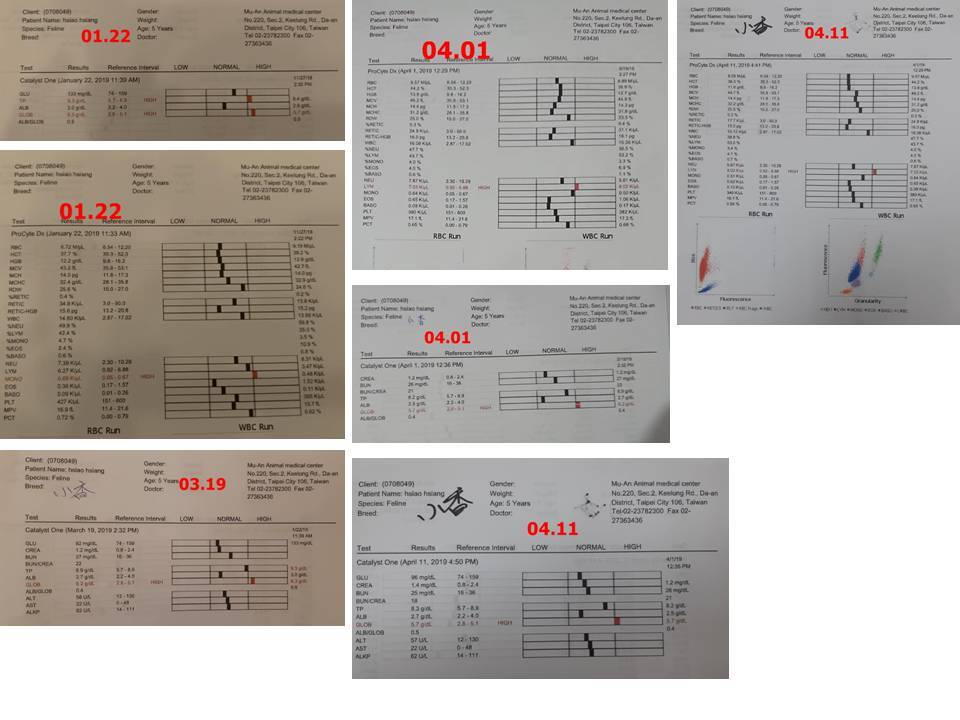3. 血檢結果球蛋白指數仍然很高,除了牙齦紅腫的狀況影響之外,還必須考慮口炎以及免疫系統病變的影響,但是因為小香目前沒有明顯症狀出現,所以等下次追蹤時再考慮。
