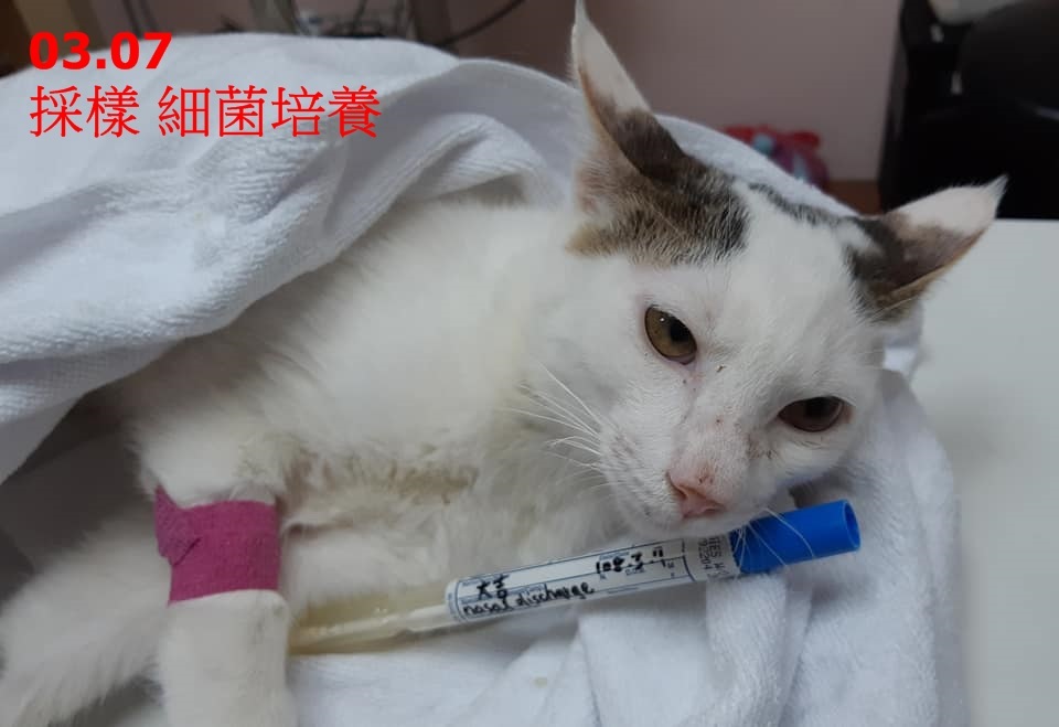 大吉有骨骼這樣的問題,可能是他先天的健康狀況就不好,呼吸系統較弱、抵抗力較差,除了感染黴菌,也出現了淚眼鼻涕的呼吸道疾病,濃鼻涕讓大吉精神食慾變不好,醫師經顯微鏡檢查、細菌培養,診斷是病毒及細菌的感染,除了吃藥還要打皮下輸液及氣霧治療,經過近二個月的治療才逐漸恢復了,看著大吉在這段期間精神不好的模樣,讓大家都好心疼。