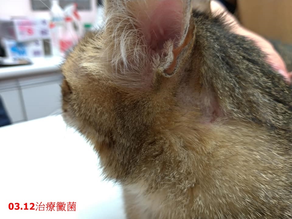 另外,橡皮擦的耳朵跟左側脖子處有黴菌,醫生建議刷洗或是藥浴。