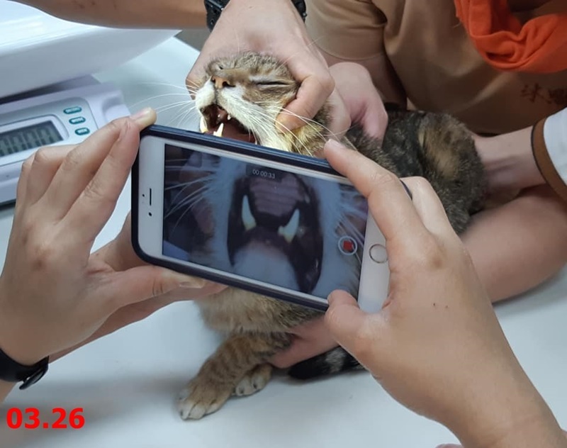 剛開始橡皮擦非常緊張也很兇,但是幾天後開始喵喵叫討飯吃,撒嬌要討摸摸,甚至還會跳到醫生助理身上要抱抱。