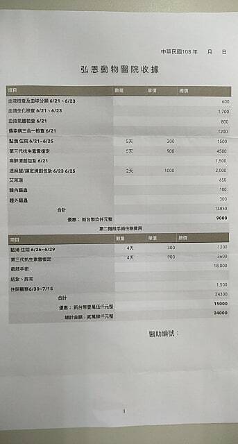 尚待第二筆收據。動物近況說明: 由發現民眾余小姐認養